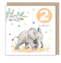 AGE 2 Birthday Card - Charming illustration - Elephant- 'Party Time' range - Made in UK - PTAGE02