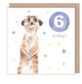 AGE 6 Birthday Card - Charming illustration - Meerkat, 'Party Time' range - Made in UK - PTAGE06