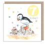 AGE 7 Birthday Card - Charming illustration - Puffin, 'Party Time' range - Made in UK - PTAGE07