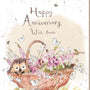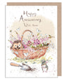 Anniversary Card - Quality Card - Charming illustration - Hedgehog in Flower basket - 'Morris and Maude' range - Made in UK - MME019