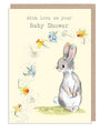 Baby shower card - Cute Rabbit with Flowers Illustration - BWE042