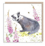 Badger Card - Quality Blank Card - Charming illustration - Badger with Foxgloves - 'Bucklebury Wood' range - Made in UK - BWE016