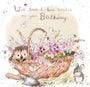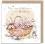 Birthday Card - Quality Card - Charming illustration - Hedgehog in Flower basket - 'Morris and Maude' range - Made in UK - MME02