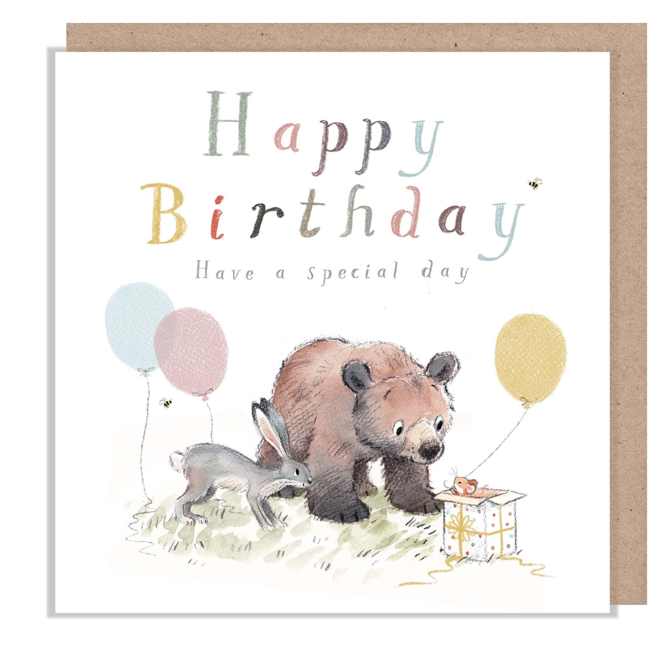 Birthday Card, Quality Greeting Card, 'the Bear, the Hare, and the Mouse', heart warming Illustrations, made in UK, no plastic,BHME024