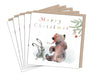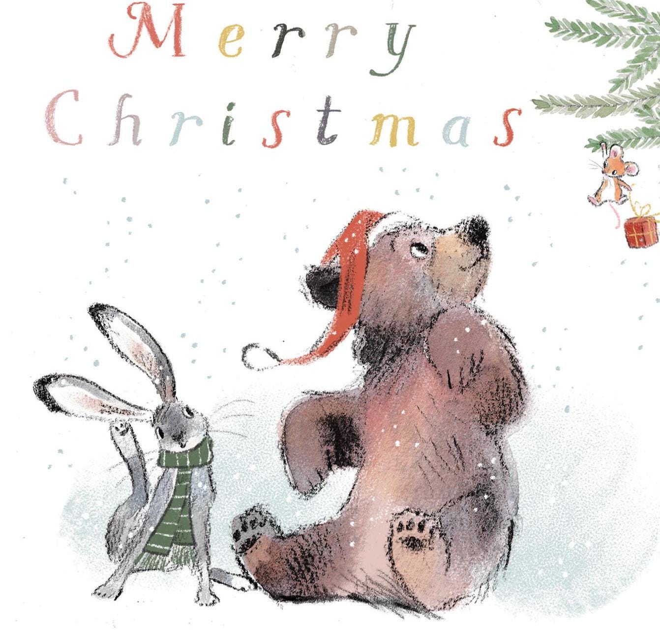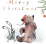 Christmas Card pack - 5 small quality cards with brown recycled envelopes -125 x 125mm- one design - Bear, Hare and Mouse - XPACK03