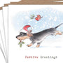 Christmas Card pack - 5 small quality cards with brown recycled envelopes -125 x 125mm- one design - Running Puppy - XPACK02