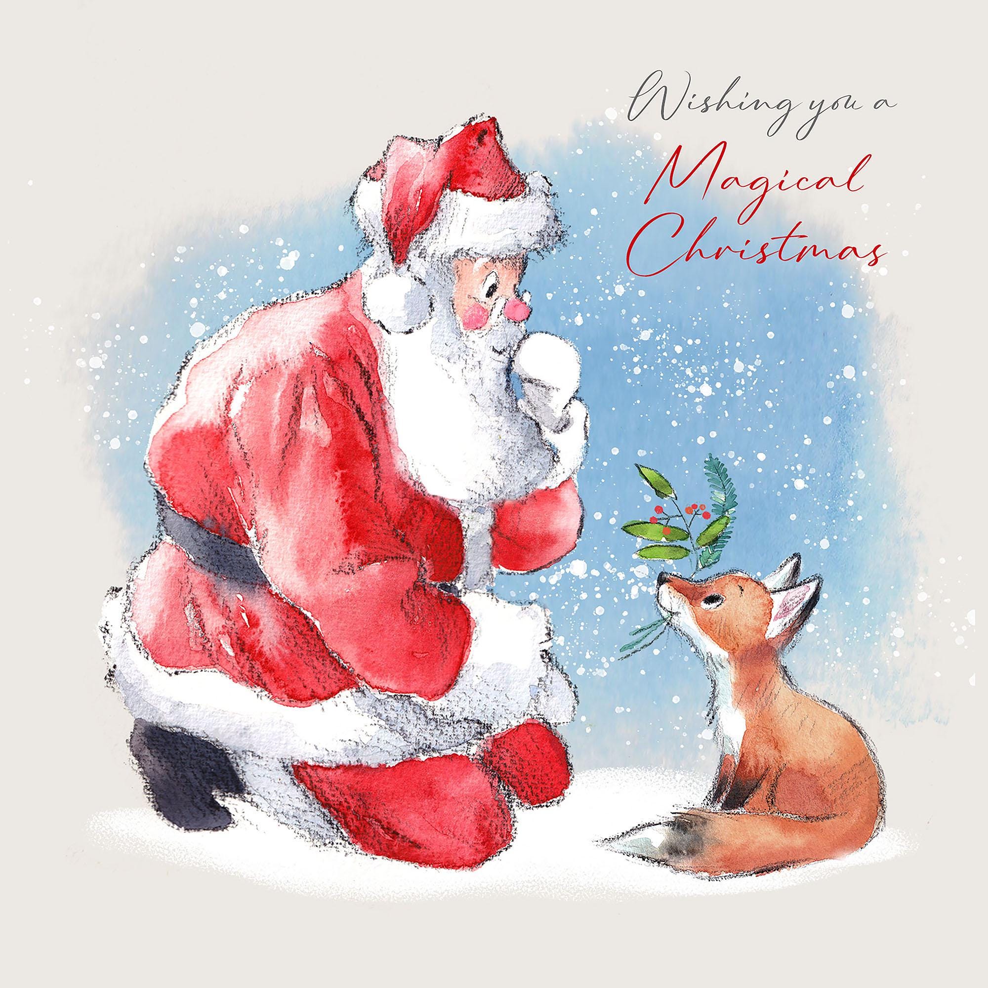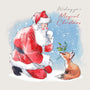 Christmas Card pack 5 small quality cards with brown recycled envelopes -125 x 125mm- one design - Santa and Fox - XPACK012