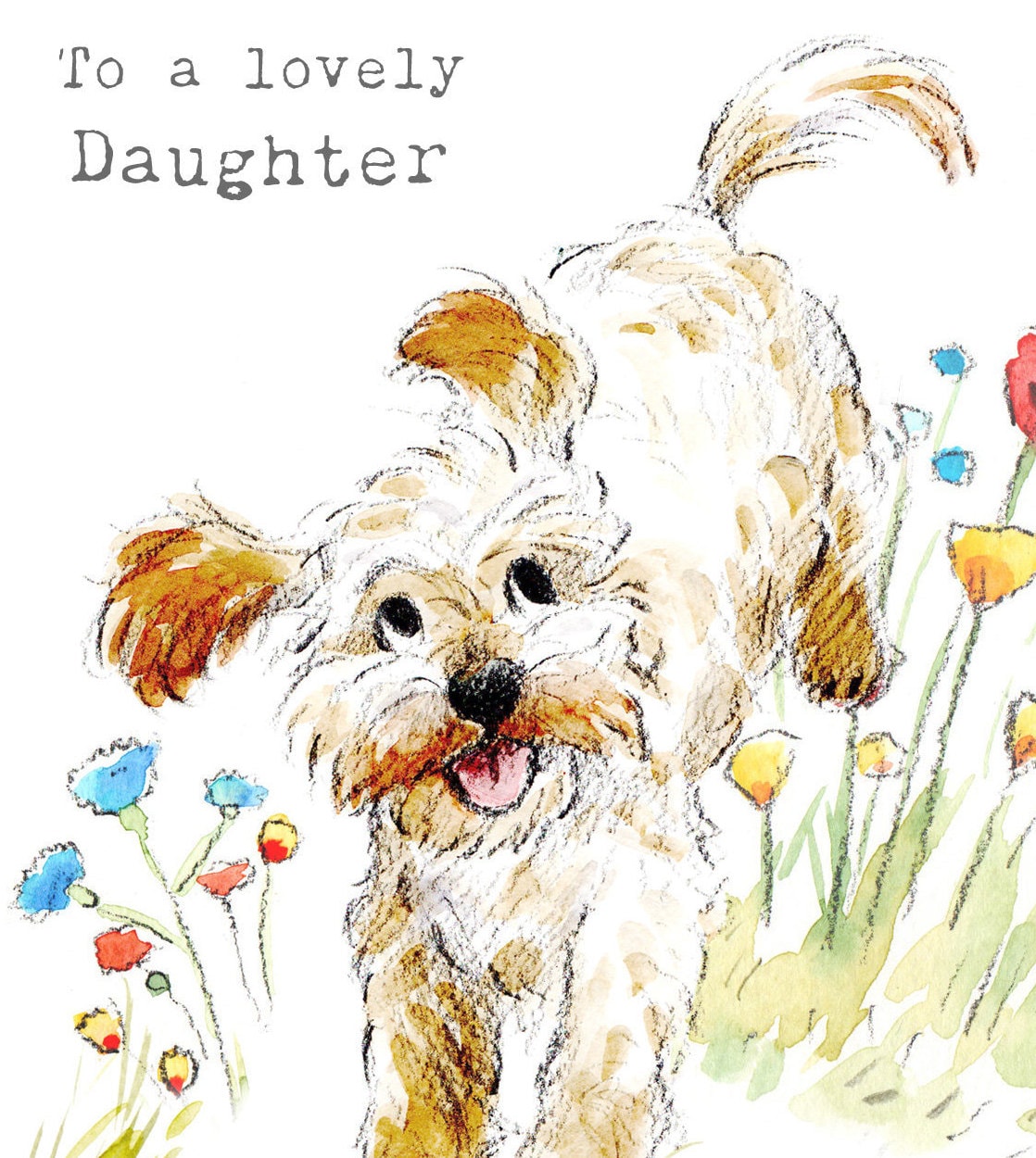 Daughter Birthday - Quality Greeting Card - Charming illustration - 'Absolutely barking' range - Cockapoo/Labradoodle - Made in UK - ABE017