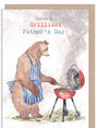 Fathers Day Card, Quality Greeting Card, Bear cooking on BBQ 'Hey Bear' range, Fun hand drawn Illustrations, made in UK, HBFD02