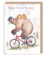 Fathers Day Card, Quality Greeting Card, Bear riding Bike 'Hey Bear' range, Fun hand drawn Illustrations, made in UK, HBFD03