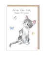 From the Cat Birthday Card - Charming illustration -'Pawsitively Purrect' range- Grey Cat with butterflies - Made in UK - EPP017