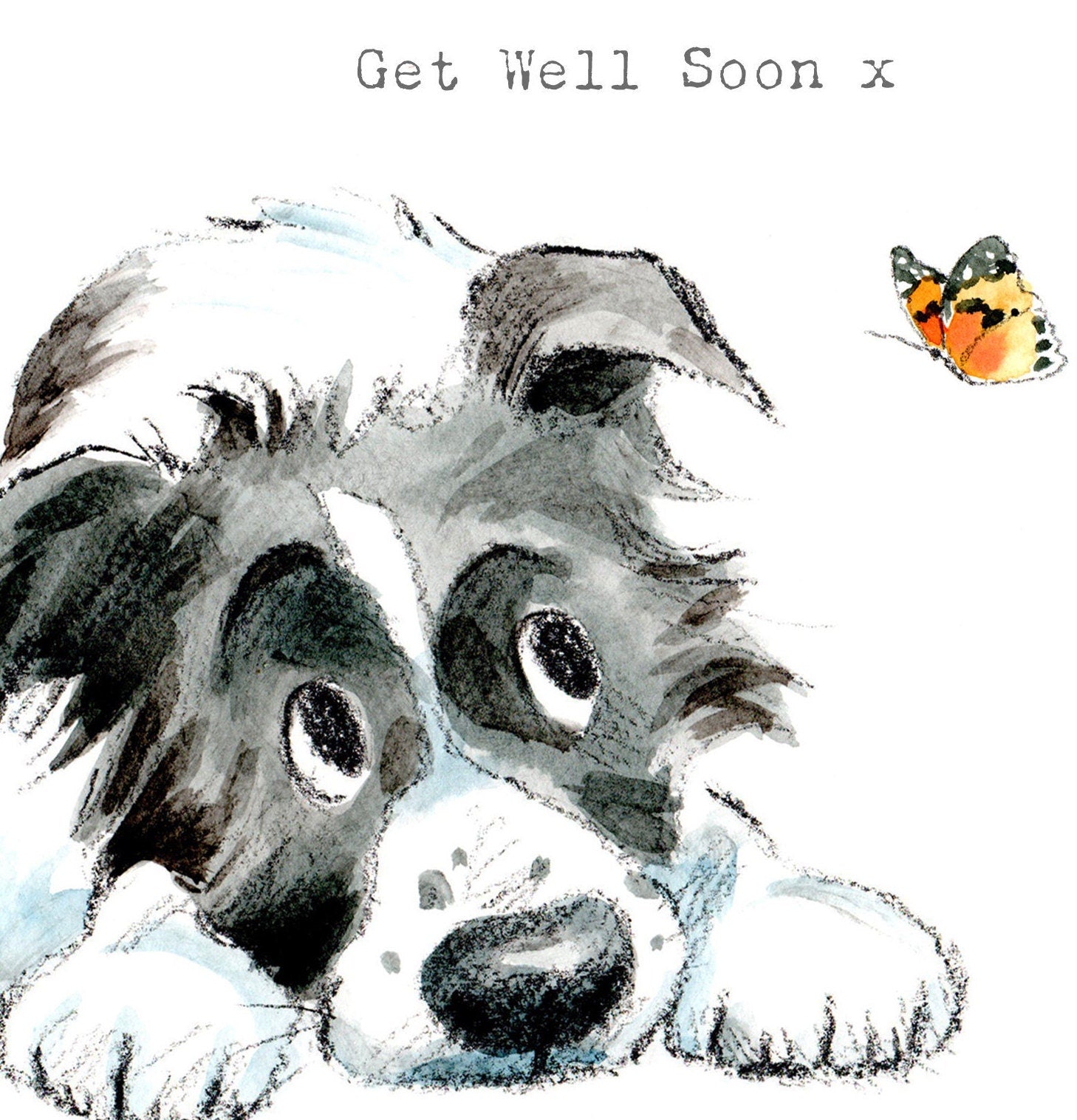 Get well Soon - Quality Greeting Card - Charming Dog illustration - 'Absolutely barking' range - Border Collie - Made in UK - ABE022