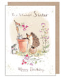 Sister Birthday Card - Quality Card - Hedgehog and Bird - 'Morris and Maude' range - MME016