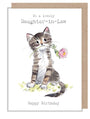 Daughter in Law Birthday Card - Charming illustration -'Pawsitively Purrect' range. Tabby Cat - Made in UK - EPP028