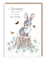 Granny birthday card - Cute Rabbit with 'forget me nots' and Butterflies Illustration BWE020