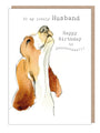 Husband Birthday Card - Basset hound Illustration - absolutely barking range - ABE076
