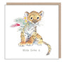 Leopard Greeting Card - Charming illustration - Leopard with Ginger flower - 'Wonderfully Wild' range - Made in UK - WWE011