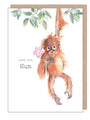 Love You Mum Card: Orangutan with Flower Illustration