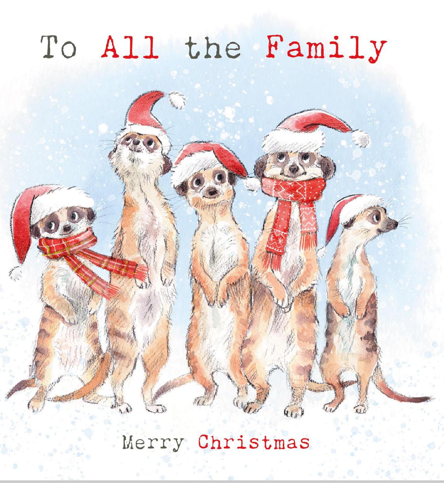 Meerkat Family Christmas Card: Charming Illustration, Made in UK WWX021
