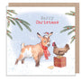 Merry Christmas - Quality Greeting Card - Charming illustration - 'Buttercup Farm' range - Goat and Hen - Made in UK - BFX04