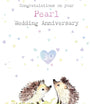 Pearl Anniversary - Quality Card- Congratulations on your Pearl Anniversary - 30 years - Hedgehogs & hearts 'Bucklebury Wood' range BWE043
