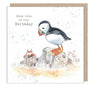 Puffin - With love on your Birthday - Quality greeting Card - Puffin and Crab illustration - 'by the Seashore' range - made in UK - SEA02