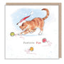 Quality Christmas Card - Charming Cat illustration - 'Pawsitively Purrect' range - Ginger cat in Xmas hat with wool - Made in UK - XPP010