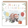Quality Christmas Card,'the Bear, the Hare, and the Mouse', Cute heart warming Bear Illustration, Bear with balloons, made in UK, BHMX018