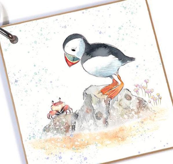 Quality Keyring - Puffin design - double sided - MDF- Made in the UK - KR011