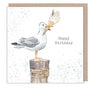 Seagull - Happy Birthday - Quality greeting Card - Seagull with ice cream illustration - 'by the Seashore' range - made in UK - SEA03