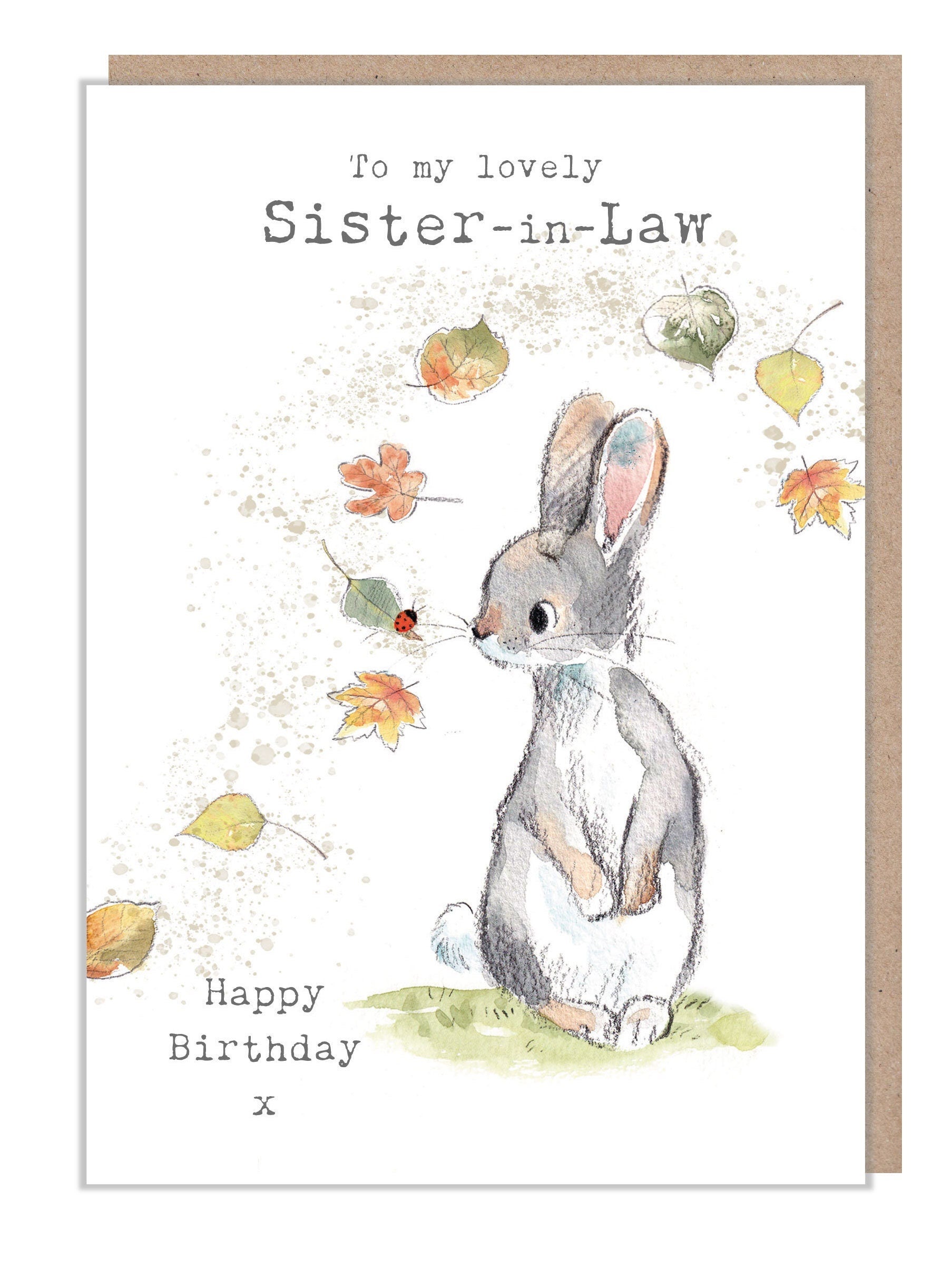 Sister-in-Law Birthday card - Cute Rabbit with leaves and lady bird Illustration - BWE024