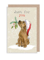 Small Christmas Gift Card -Quality Folded Gift card with envelope for a special gift - Just for you - Brown puppy design - made in UK -GC01