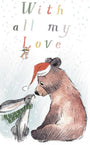 Small Christmas Gift Card - Quality folded gift card with envelope for a special gift - With all my love- Bear Hare Mouse- made in UK GC06