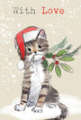 Small Christmas Gift Card - Quality Folded Gift card with envelope for a special gift - With Love - Tabby Cat design - made in UK - GC03