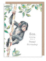 Son Birthday card - Charming illustration - Climbing chimp - 'Wonderfully Wild' range - Made in UK - WWE018