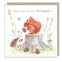 Squirrel Birthday Card - Charming illustration - Red Squirrel and Hedgehog - 'Bucklebury Wood' range - Made in UK - BWE012