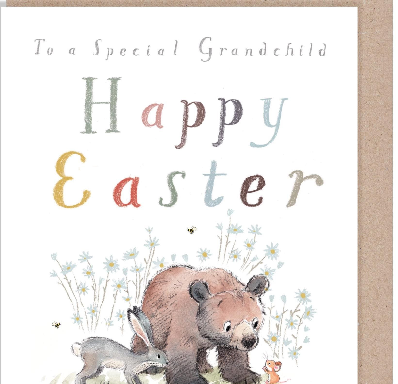 To a Special Grandchild - Easter Card, Quality Greeting Card, 'the Bear, the Hare & the Mouse', Charming Illustrations, made UK, BHMEASTER02
