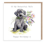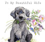 Wife Birthday Card: Labrador Dog with Flowers Illustration
