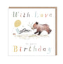 With love on your Birthday, Quality Greeting Card, 'the Bear, the Hare, and the Mouse' , heart warming Illustrations, made in UK, BHME02